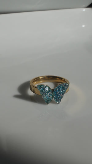 The Blue Aurora Butterfly Ring captures the magic of transformation with shimmering crystal wings that glow in shades of blue. Its open-wing design adds a soft, feminine touch—perfect for anyone who loves sparkle with a dreamy twist. Wear it alone for a sweet statement or stack it for a full fairytale moment.
