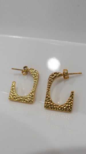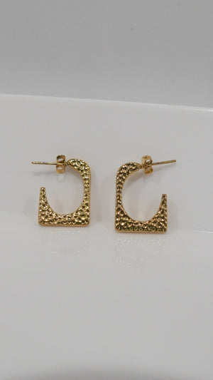 Add bold texture to your everyday look with the Gleam Square Hoops. These gold-toned statement earrings feature a hammered finish that catches the light with every turn. Lightweight and chic, they bring a modern edge to any outfit while staying comfortable for all-day wear.