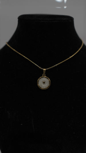 Graceful, soft, and romantic — our Golden Swirl Heart Necklace features a round pendant with a dreamy white swirl center and a polished gold heart floating at its core. The unique marble-like texture adds depth and elegance, making this the perfect everyday statement piece.