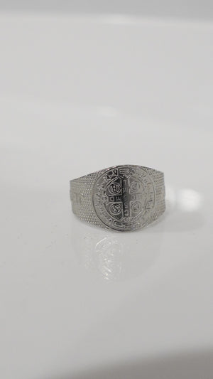 • Symbolic Design: Features the traditional St. Benedict Medal design on the face and the word "JESUS" engraved on the band.