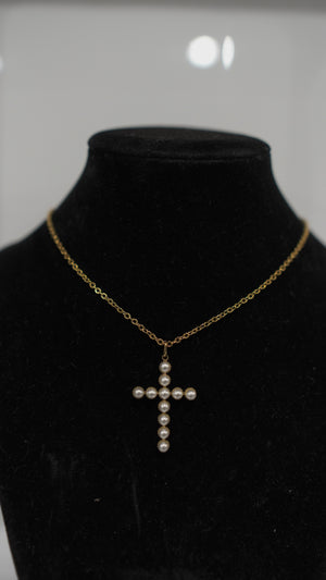 Soft, radiant, and timeless — our Luminous Pearl Cross Necklace features a delicately framed cross adorned with shimmering pearl accents. This piece brings a touch of elegance to any outfit, making it perfect for everyday wear or special moments.