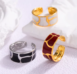 The Milk Ring collection brings statement energy in three mood-matching shades—cream, crimson, and midnight. With smooth enamel detailing over a chunky band, each ring adds that instant it-girl pop to your stack. They're giving elevated streetwear in jewelry form.