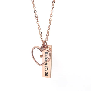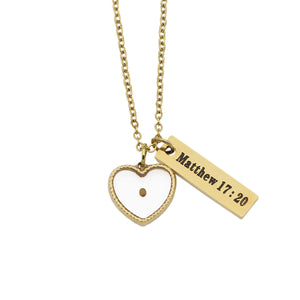 The Mustard Seed Necklace is a distinctive faith-based accessory designed to be worn continuously, thanks to its waterproof construction. Featuring a unique design engraved with inspiring Bible verses, this necklace serves as a meaningful reminder of faith and resilience. Its durable build ensures it remains a lasting symbol of spiritual strength, making it both a stylish and purposeful piece for everyday wear.