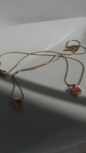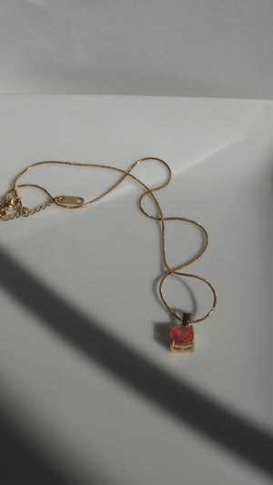 The Rose Gleam Pendant features a vibrant pink gemstone set in a sleek gold frame, catching the light beautifully with every move. Soft, feminine, and effortlessly elegant, this necklace adds the perfect pop of color to any look—whether worn alone or layered with your favorite chains.