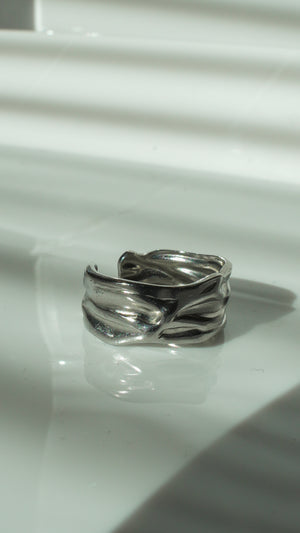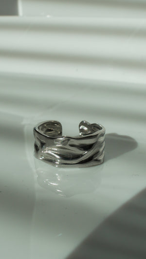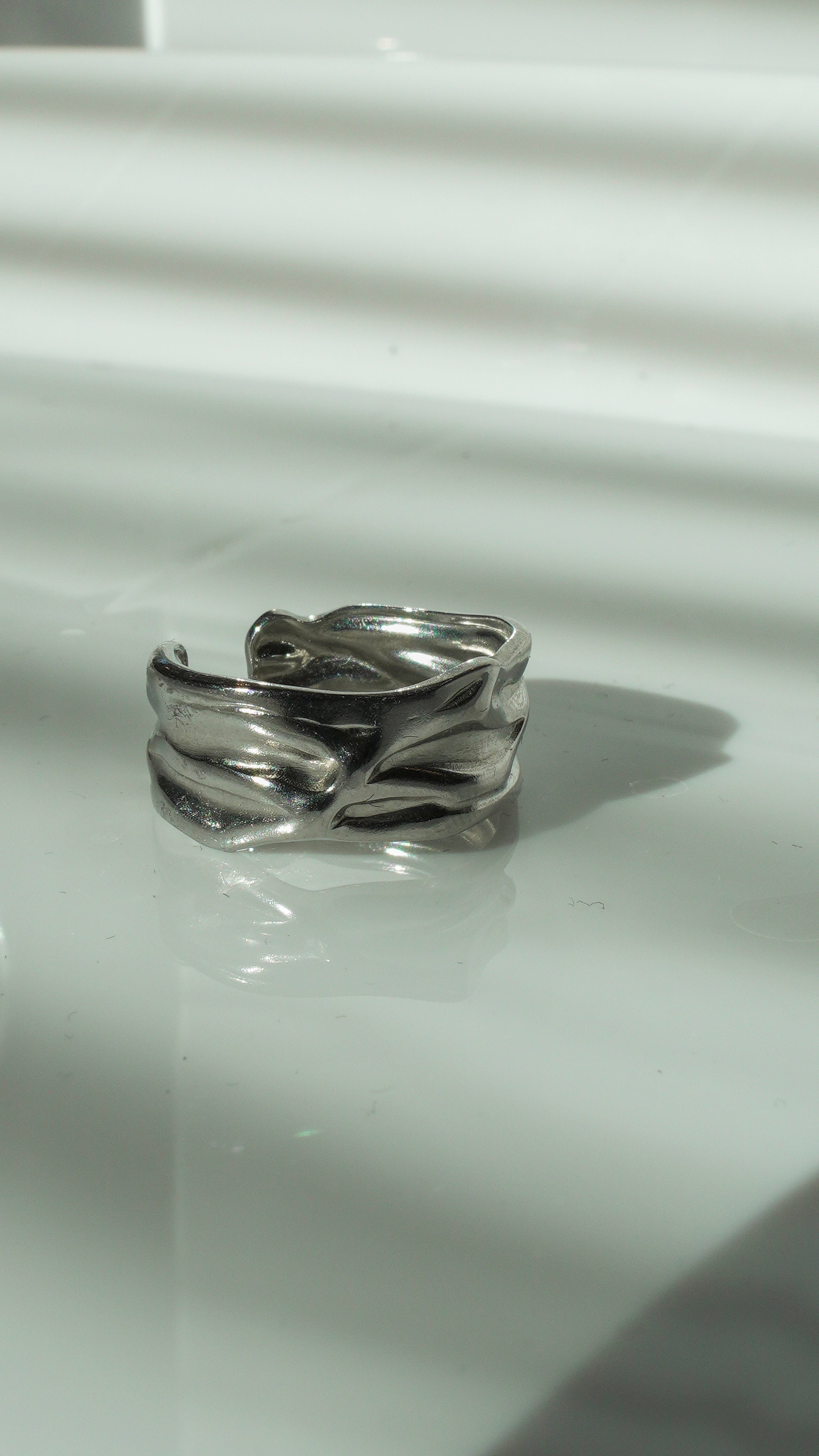 Make a striking, modern statement with our captivating Silver Wave Ring. This wide, artistic cuff ring features an organic, fluid design with a subtle hammered or 'liquid silver' texture that beautifully catches the light. Crafted from premium stainless steel with a brilliant silver-tone finish, its open band makes it easily adjustable for a perfect fit on any finger. Designed for a life without limits, this statement piece is guaranteed 100% waterproof, tarnish-free, and sweatproof, and the hypoallergenic metal ensures exceptional comfort and wearability.