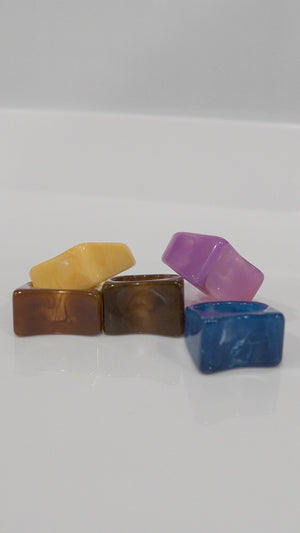 Get ready to add a burst of nostalgic fun to your fingers with the Retro Candy Pop Rings! This vibrant stack brings back the bold, chunky styles of the Y2K era with a glossy, sweet twist. Each ring is crafted from smooth, glossy resin in juicy, swirling colors—from rich caramel swirl and bright citrus yellow to electric purple and vibrant deep blue.