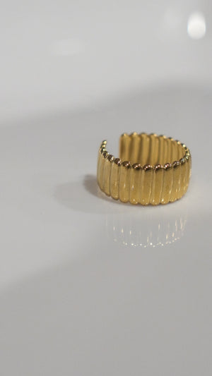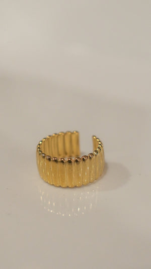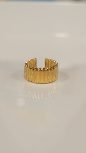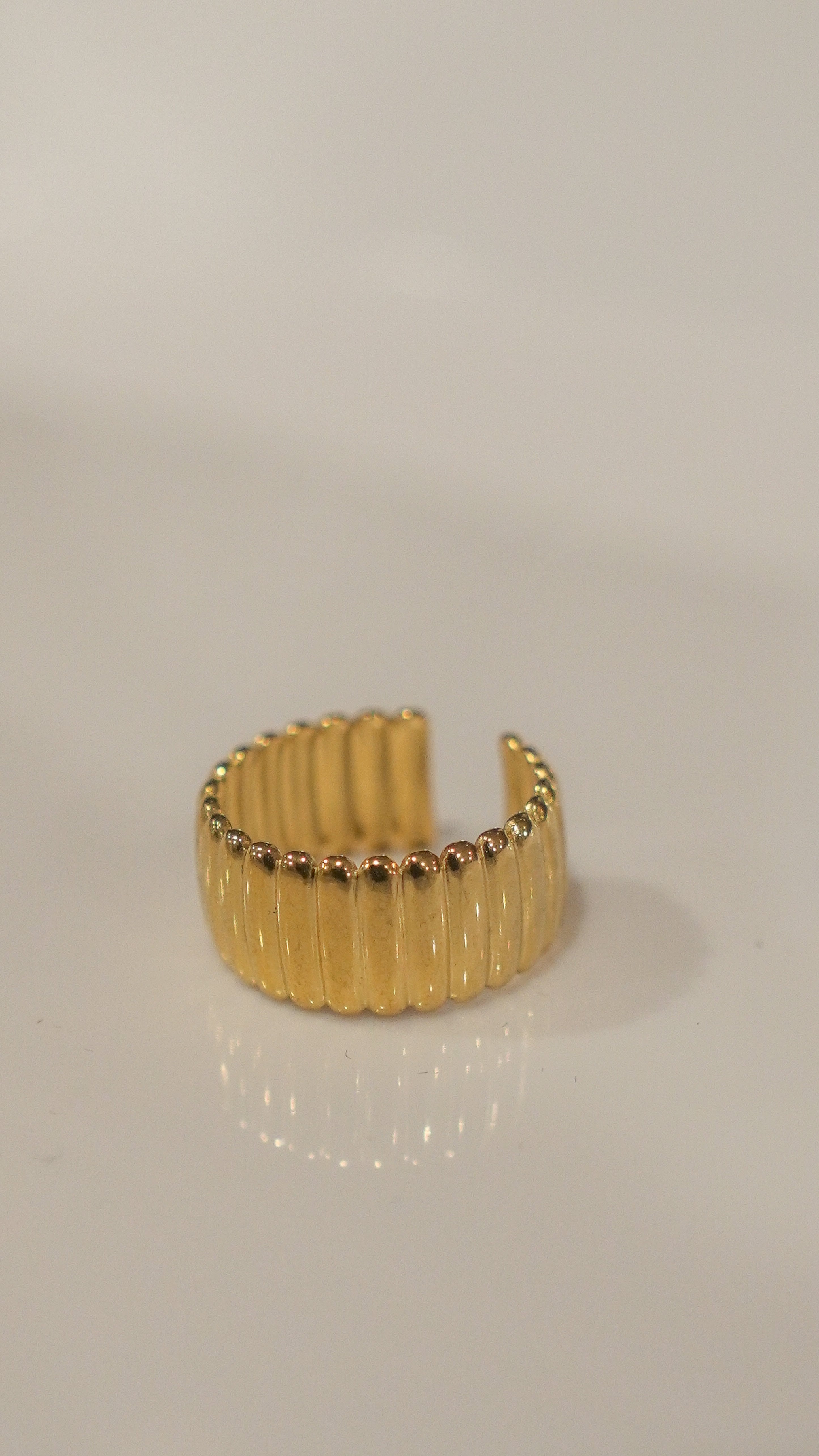 A minimal yet stylish gold band featuring a slim oval design all around for a sleek, modern look. Lightweight, adjustable, and perfect for stacking or wearing alone. Crafted with high-quality stainless steel so it stays shiny, water-safe, and tarnish-free for everyday wear.